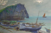 André Eugene goes to Paris from time to time but regularly to Cunlhat where he henceforth mixes with the notables of the village and goes to their meetings. He moves to Paris for good with Jeanne in 1896; she has become his pupil, but she paints in paler tonalities. She signs Jane Costilhes and exhibits her paintings, in particular at the Salon of the Independents in 1911 and 1912. In 1913, she dies as a result of an operation at the age of 39. Totally distraught and worn out because of this sudden death, André Eugene ceases to draw and paint for a long time. His faithful friend Henri Laugier helps him to resurface. But he will cease to exhibit his works of art almost completely although he has reached the fullness of his art during this part of his life, that is to say during 25 years. Before the 1914/1918 war, his landscapes mainly represent Auvergne, Brittany, Paris and its surroundings. After the war, still Auvergne and Paris, but also Normandy and the outskirts of Paris, particularly Pontchartrain.